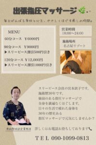 ところでスリーピースのリゾートサービスの名古屋リゾート内にハウスキーパーと出張マッサージがプラスされました。